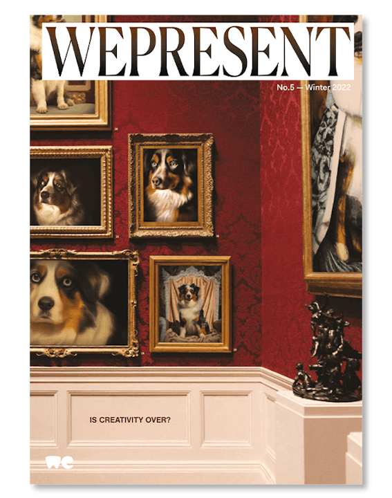 A crazy experiment in the power of graphic design, each issue of WePresent is created in three separate versions by three different sets of designers. The designers for this fifth issue are Paula Scher in New York, Turbo in Amman, and Hort in Berlin, and this product page is for the version designed by Paula Scher.