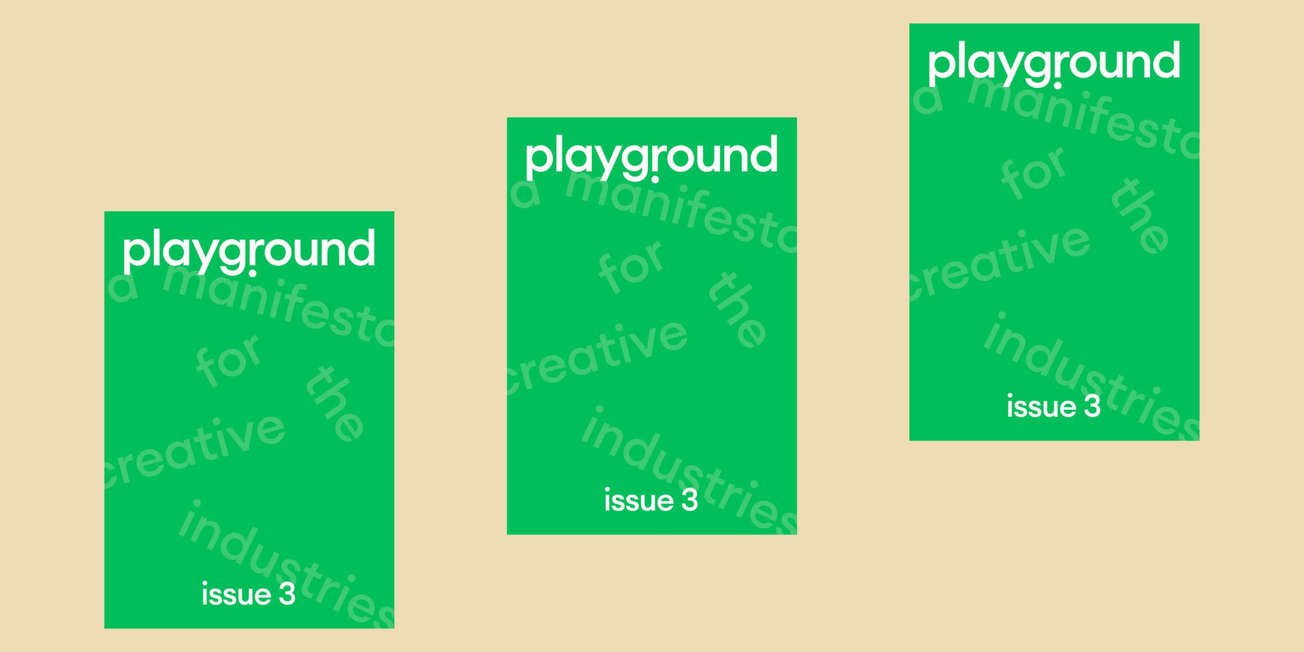 That’s not to say that Playground magazine is all unfettered positivity, though. The first section is a report on the state of the creative industries, which canvassed opinion from 75 professionals across 32 cities in 21 countries, and returned a gloomy set of results. Half of respondents say they feel limited by financial and industry constraints; 92% say they have to compromise their creative freedom for financial stability; and words like ‘uncertain’, ‘confused’, and ‘doomed’ prevail.