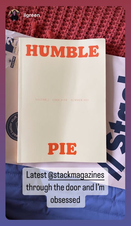 Cake Zine has a robust roster of events bringing the magazine to life, both in our home base of New York City and around the world. Our most recent NYC launch party for Humble Pie featured over 800 people feasting on dessert, reading magazines, getting pie-themed tattoos, and even participating in a very humbling pie eating contest. We also run an active newsletter and Instagram account, and do regular merch drops in collaboration with the NYC-based design studio Social Species.