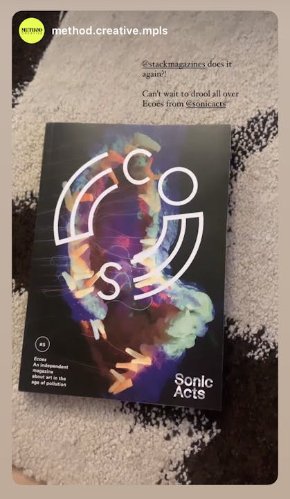 Off the page, Sonic Acts is planning on bringing the magazine to life through events, including a launch at Amsterdam bookshop San Seriffe on 13 July, which will host a live, performative rendition of Annika Kappner’s visual essay in Ecoes #5 and a reading by Alice Johnston Rougeaux. Additionally, we hope to broaden our reach by increasing our presence at international book fairs and worldwide printed matter events.