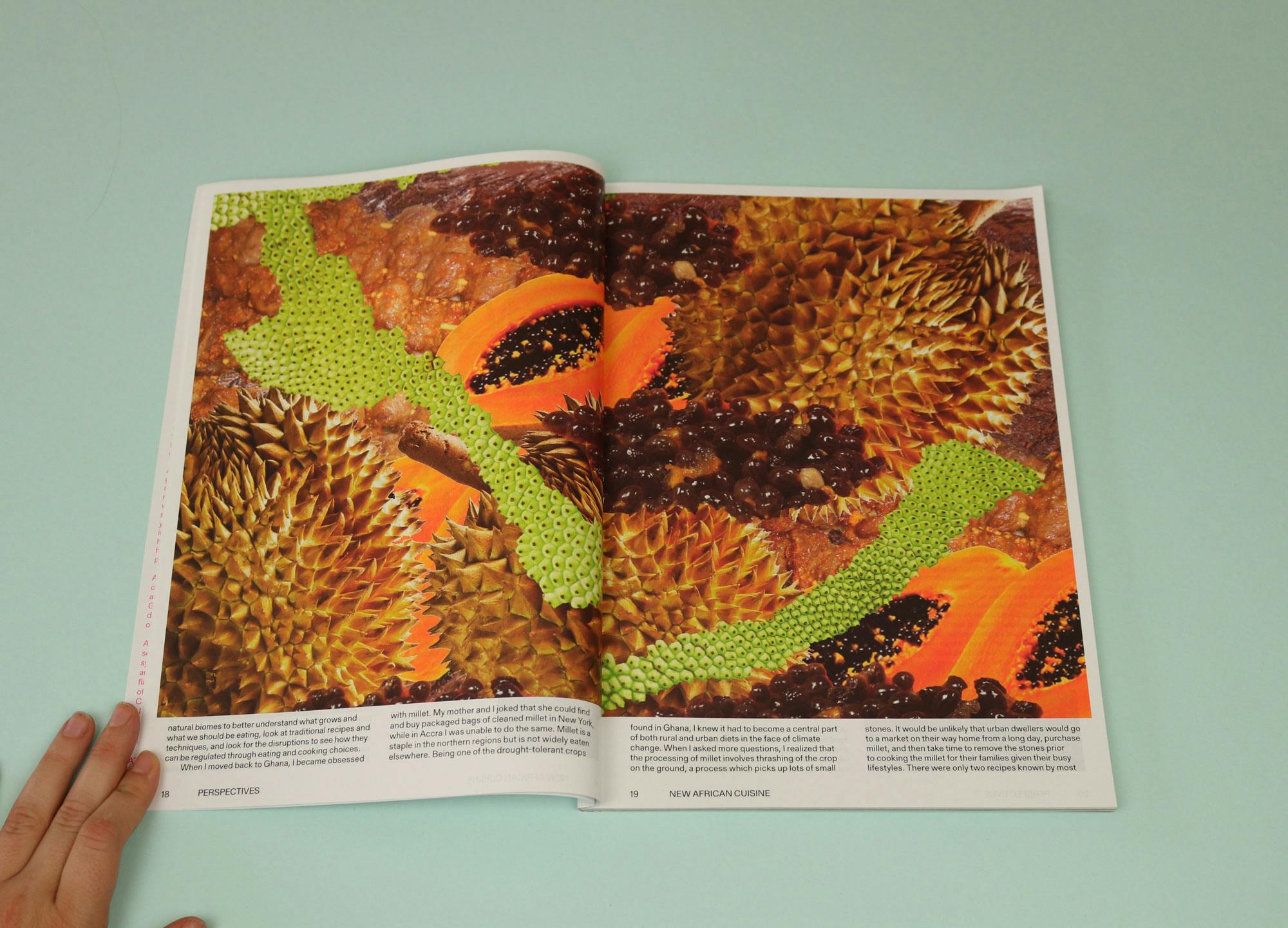 Mold is a design magazine about the future of food. Techy and slightly trippy, its fourth issue, entitled ‘Designing for the senses’, begins at birth: “Within minutes of being born, one of our first acts is to seek out food… mewling babies crawl up their mother’s bodies to breastfeed themselves.” In the pieces that follow, neuroscientists, chefs and farmers propose design solutions to the food crisis.