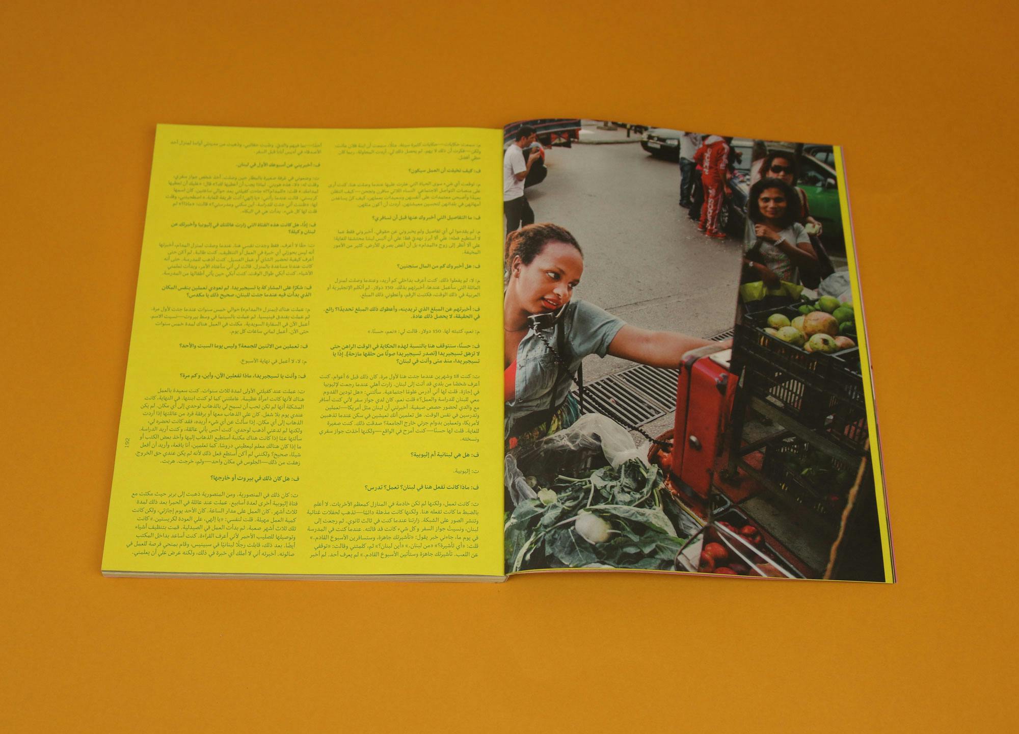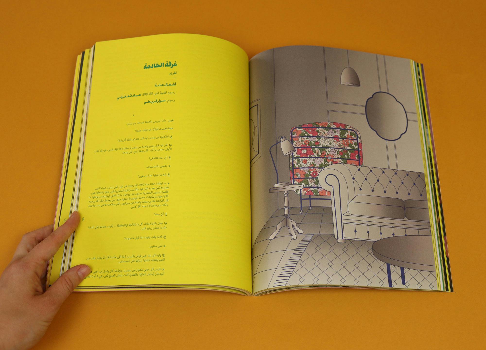 Safar is published in Beirut, and issue five’s cover stars are Tsigereda Brihanu and Mekdes Yilma, two Ethiopian women who share their first-hand experiences of living under ‘Kafala’, the sponsorship system used to exploit many vulnerable migrant workers in Lebanon. Entirely bilingual, Arabic and English text sits side by side, and every page sparkles with colour. My two favourite pieces are wonderfully different: an essay on the architectural significance of the ‘maid’s room’; and a Miranda July story about the correct technique required to get a woman off.