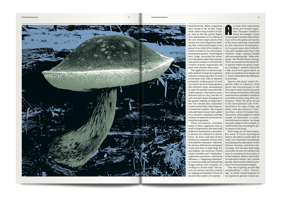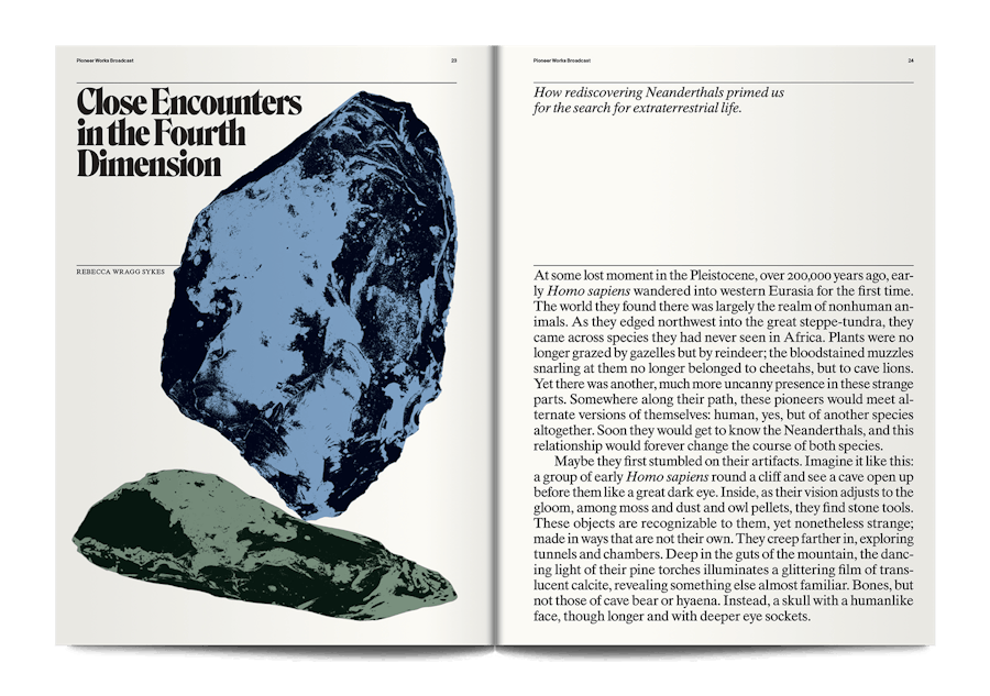 Taking an expansive approach to storytelling, Broadcast combines art and science as a way of looking beyond the everyday. Lots of magazines build their editorial around art, but I can’t remember the last time I read a story about the shape of the periodic table, let alone one that successfully explains how that shape, “encodes the character of the quantum atom”. It’s mind-blowing stuff, but rendered in totally accessible, entertaining text that’s as fun as it is enlightening.