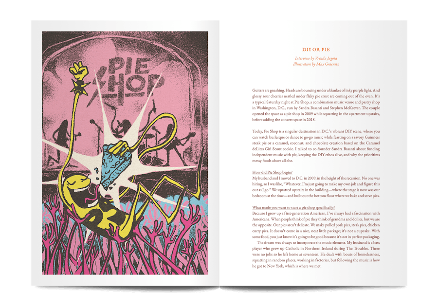 A lovely, literary food magazine published in Brooklyn, Cake Zine’s first two issues were dedicated to an appreciation of cake (‘Sexy Cake’ and ‘Wicked Cake’ respectively). But this third issue takes a different culinary direction, devoted to the crusty delights of pie, and the various interpretations of ‘Humble Pie’.