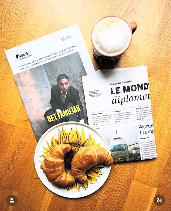 “Raining cars and dogs: perfect alibi to stay on the couch and floor! With @stackmagazines and this month’s gem @getfamiliarmag – taking a long and detailed look at #hiphop’s role in our wider #contemporary #culture – #printlove #printneverdies #magazine #print #music #artist #delasoul #flyinglotus #carolinekent #sampha #jennnkiru #yayabey #musician #coffee #croissant #breakfast #weekend #saturday
