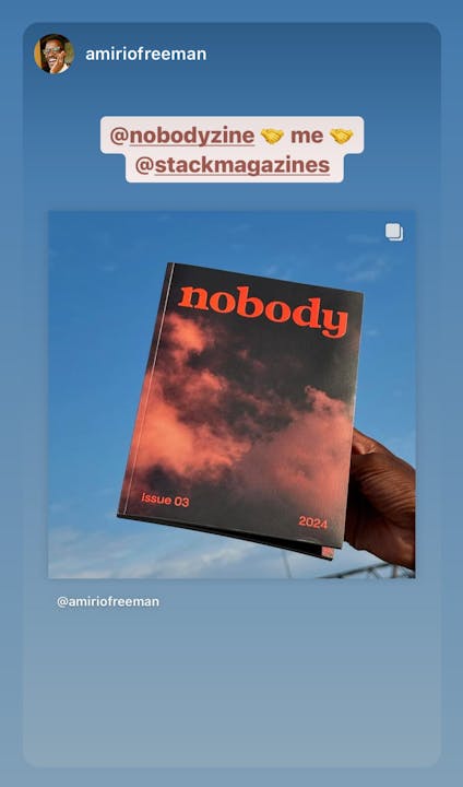 When we started Nobody, we were friendly but not quite friends. Creating this magazine is what solidified our friendship – and even maintained it, when one of us got stuck back in California for over a year during the pandemic.
