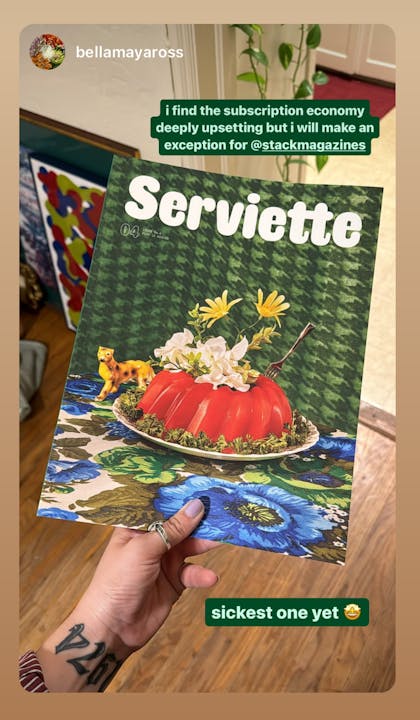 Serviette is a magazine about food: the people who grow and produce it, the distances we travel to eat it, and all the ways it’s tangled up with culture, science, history, and design.