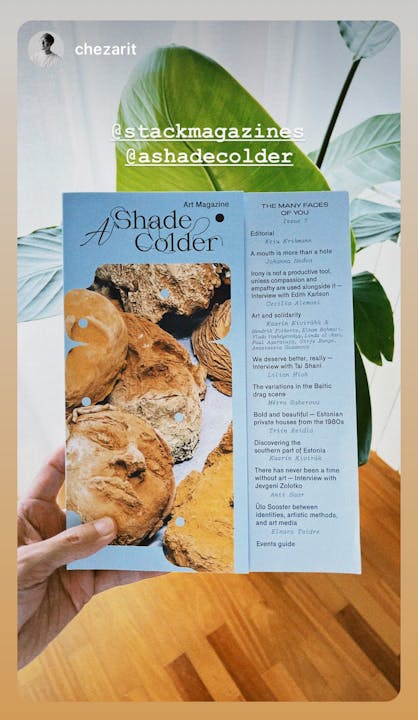 An internationally-facing arts magazine published in Tallinn, A Shade Colder presents a unique picture of art and creativity as seen from Estonia and the wider Baltic states.