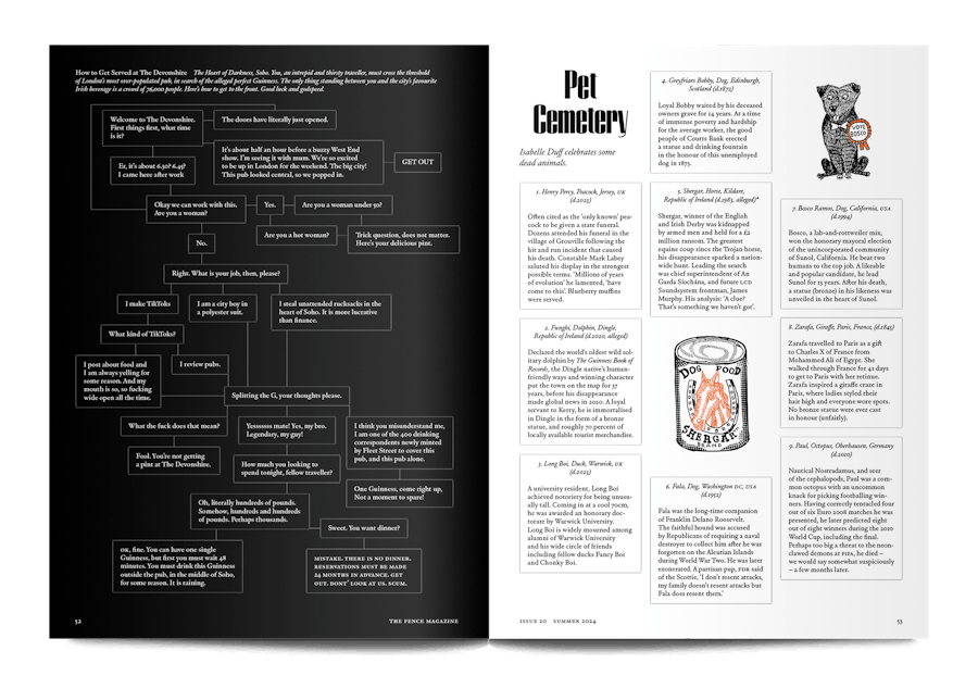 The Fence gives readers a unique view of the world, tapping into its network of contributors to present a range of perspectives that are not normally available to the uninitiated. That might mean going behind the scenes in big business, or just finding a great London pub for a quiet pint, but whatever it is, The Fence will deliver it with its trademark wit and style.