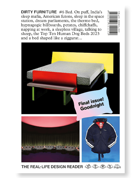 The final issue of a decade-long editorial project, Dirty Furniture heads to bed with a collection of design-based stories focusing on sleep, sex, productivity, and other tales from the bedroom. We love Dirty Furniture and this is a fitting finale to a brilliantly playful and insightful magazine.